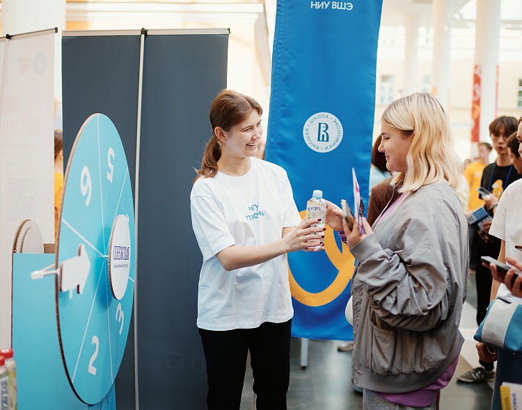Фестиваль «Вышка школьникам». Для ребят 4–11 классов и их родителей мы подготовили розыгрыш с колесом фортуны и угощали вкусной водой. Было много участников и улыбок — нам удалось подарить праздник каждому.